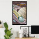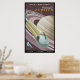 Vintage travel poster to Saturn on a midnight zephyr space train.