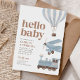 Invite friends and family to share in the joy of your little one's arrival with this travel themed baby shower invitation.