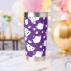 A travel mug featuring two patterns. One is a pattern of coffee mugs, the other is a pattern of tea pots.