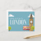 A fantastic retro postcard with red bus and big ben, travel with me to London, England.