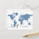 Travel World Map Blue Heart RSVP Postcard