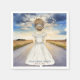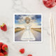 Travelling from Miss to Mrs bridal shower napkins with bride facing an open road. Personalise it with your event details.