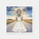 Travelling from Miss to Mrs bridal shower napkins with bride facing an open road. Personalise it with your event details.