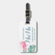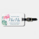 Fun travelling from Miss to Mrs girls weekend, destination wedding or honeymoon luggage tags feature my original watercolor pink flamingo and tropical greenery on a clean white background. Personalised with your details in a blue girly calligraphy script and sans typography. The back features a pattern of my watercolor pink flamingos. Part of my bridal party series. To see more, visit www.zazzle.com/vginvites