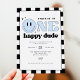 This one happy dude first birthday invitation features a fun retro font and blue smiley face with a chequered background. This invitation is perfect for your little man to celebrate his first big birthday! Pair with anything in the TRAVIS Collection for a cohesive look.