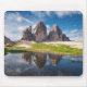 Photo mousepad with the famous three peaks of the Tre Cime di Lavaredo or Drei Zinnen Dolomites mountain with reflection in the water of a puddle on a beautiful day in South Tyrol/Trentino Alto-Adige in Northern Italy.