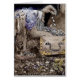 Vintage John Bauer drawing depicting a hump backed troll playing with his jewels and treasure.