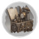 A design of a treasure chest with gears, antique style and a treasure map combines elements of nostalgia, adventure and mystery. Antique and nostalgic charm. The treasure chest is decorated with a variety of gears placed along its frame or on the lid. These gears could be made of brass or bronze, adding a touch of mechanics and mystery to the design. The gears could possibly be connected to keyholes or levers that allow the viewer to turn or move them to reveal the secret of the treasure chest.