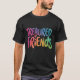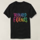 This t-shirt features the text "Treasured Friends" in a playful, multicolored gradient. Each letter has a slightly different texture or pattern, adding a touch of dimension to the design.