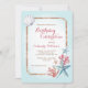 A watercolor, beach-theme invitation with a pale blue background and a rope frame featuring starfish, shells and coral. (<a href='https://www.freepik.com/free-vector/watercolor-marine-frame_2209864.htm'>Designed by Freepik</a>). <br/><br/>The card is easy to customise with your wording, font, font colour, paper shape options and choice of six paper types.<br/><br/>Not exactly what you're looking for? All our products can be custom designed to meet your needs at no extra charge.<br/><br/>Simply contact us at heartfelthelper@gmail.com.<br/><br/>Coordinating products available: Just ask us!