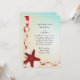 A beautiful seashell wedding invitation ideal for beach weddings, tropical destination weddings, bridal showers, dress rehearsal invitations and post wedding brunch invitations. The teal to sand background has red ribbons and seashells anchored by a red star fish in the corner. The card is easy to customise with your wording, font, font colour and choice of six paper types.