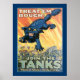 "Treat 'em Rough - Join the tanks"vintage World War l Poster by August Hutof, 1918.
