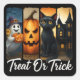 "Treat or Trick" Halloween Brush Stroke Cat Square Sticker