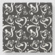 The coasters are gorgeous, a quality feel and heavy weight. They look like a precious archeological find. A rustic stone juxtaposed with a modern floral black and white print. I like the way the print goes slightly imperfect on the cut stone edges giving them a kind-of natural beauty.