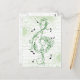 Treble clef green scrollwork sol note key, featuring the sol note key in green scrollwork style and black notes.