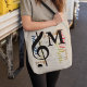 Your Name in a nice monogrammed item. A pattern of personalised names of different colour and font styles, with your own Initial, and a black musical note