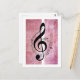 Boho style minimal design treble clef and swirling musical notes on deep pink background.