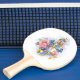 Gold, jewellery, treble clef decorated with delicate, artistically painted pink roses with fluttering blue butterflies.