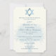 Elegant and sophisticated ivory and blue tree silhouette design bar mitzvah invitation with a Star of David.