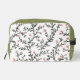 Discover our elegant toiletry bag featuring a captivating repeating pattern of dark-greenish branches with delicate pinkish-red flowers. The organic, flowing design creates a dense yet balanced look against a pure white background, making it perfect for stylish travel and organisation.