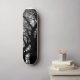 A skateboard with a high contrast photo of trees in winter. Creating a dramatic natural design.