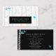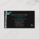 A business card with a modern yet sweet rustic unique design has a black background populated with birch trees and falling leaves.