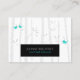 A business card with a modern yet sweet rustic unique design has a black background populated with birch trees and falling leaves.