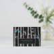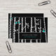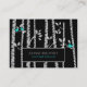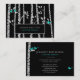 A business card with a modern yet sweet rustic unique design has a black background populated with birch trees and falling leaves.