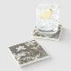 The coasters are gorgeous, a quality feel and heavy weight. They look like a precious archeological find. A rustic stone juxtaposed with a modern floral black and white print. I like the way the print goes slightly imperfect on the cut stone edges giving them a kind-of natural beauty.
