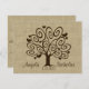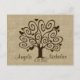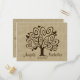 Whimsical tree and hearts postcard with a burlap look background to compliment invitations.