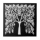 Ceramic tile in a stylised, leaf and branch, tree of life design in white on black