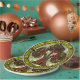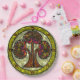 Gorgeous & intriguing, the original digital painting adorning this paper plate is a real cross-cultural gem! From a traditional Japanese water lily design, artist Leslie Sigal Javorek has created a rich Tree of Life with agate & burl wood finishes, surrounded by a ring of mossy green foliage dotted w/ Hebrew symbols for "Life" & stylised Magen Davids, all set against a background that looks like a stone mosaic.