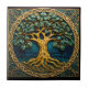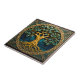 Bring nature's splendor into any space with this stunning decorative ceramic tile featuring a golden tree. At the heart of the tile, a majestic tree stretches its intricate branches and leafy foliage across a serene blue background. The lush green and blue leaves seem to sway as if rustled by a gentle breeze. Subtle waves radiate from the tree's roots, washing over the tile in hues of sky blue and turquoise. Encircling the central design, an ornate Celtic knot border glimmers in shining gold. Whether hung as wall art or displayed as a table centerpiece, this peaceful tree tile emanates natural tranquility with its harmonious blending of colors and textures. An eye-catching accent for cottage-chic decors, this ceramic tile artwork evokes the wonder of the great outdoors.