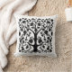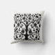 Pillow in a stylised, floral themed, tree of life design in black on a white background