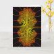 This digitally rendered fractal artwork features an intricately branching pattern of orange, red, and yellow designs on a black background.