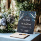 It is sturdy than I expected. Was worried about the material being flimsy but it is not. It is printed on some sort of plastic material. It should serve well at our wedding as long as wind isn’t too bad. Otherwise we will put some paper weights behind it and should be fine.