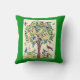 Throw pillow in a tree adorned with delicate pink blossoms and teeming with vividly coloured birds amid lush foliage. The scene includes playful hanging ornaments and surreal elements, creating a dreamlike, storybook atmosphere.