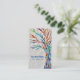 This decorative business card features a colourful tree of life on a pale grey background.