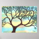 Tree on Vellum with Watercolor Background Poster