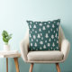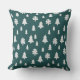 This cushion design features a stylish winter forest theme, ideal for the holiday season or creating a cosy, wintery atmosphere. The pattern consists of various white silhouettes of pine and fir trees scattered across a deep green background, resembling a snowy woodland scene. The trees vary in size and shape, creating a visually interesting and balanced layout, while the dark green base colour provides a calm and sophisticated backdrop that complements the crisp white tree shapes.