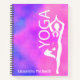 Elevate your journalling practice with this visually captivating yoga notebook featuring a unique figure-within-a-figure in Tree Pose asana. The elegant silhouette is set against a dreamy pink and purple watercolor background, with the word YOGA displayed vertically alongside the pose—bringing balance and beauty to every page.