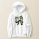 This hoodie sweatshirt is a T- Rex wrapped in Christmas Lights can be personalised with your child's name