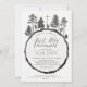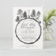 This rustic Communion Invitation has a tree ring background and is adorned with a woodland scene that includes a deer and pine trees.