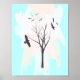 A design with a silhouette of birds soaring around a tree on an abstract background. The colours are black,tan,cream and aqua. Feel free to change the size of this poster print or add text to suite your needs!
