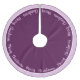Holiday tree skirt is shown in a warm orchid and purple colour with purple text of Merry Christmas written in script all the way around the tree skirt with a solid colour border.