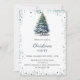 A winter invitations for a Christmas party. A white background on the front decorated with a watercolored hand-drawn pine tree with snow and faux green sparkling glitter. Personalise and add your party details.
