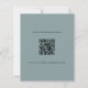Back: blue-green background. Add your website url to the QR code for RSVP and/or party details.