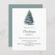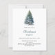 A winter invitations for a Christmas party. A white background on the front decorated with a watercolored hand-drawn pine tree with snow. Personalise and add your party details.