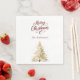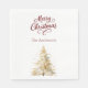 A white background and dark red text. Decorated with a snowcovered pine tree. Merry Christmas is written with an elegant hand-lettered style script. Personalize and add your family name
