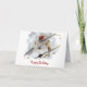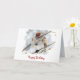 This birthday card features a very cold American Tree Sparrow sitting on a branch, all fluffed up to stay warm during a snowstorm full of blowing drifting snow. His distinctive red cap and breast spot identify him as this species of sparrow. All text can be customised to suit your needs.